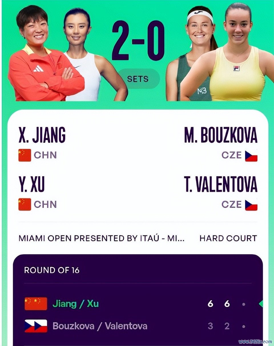 中国组合蒋欣玗/徐一璠以6-3、6-2直落两盘横扫捷克搭档布兹科娃/瓦伦托娃,首次配对便强势晋级八强,展现出极佳的默契与竞技状态。